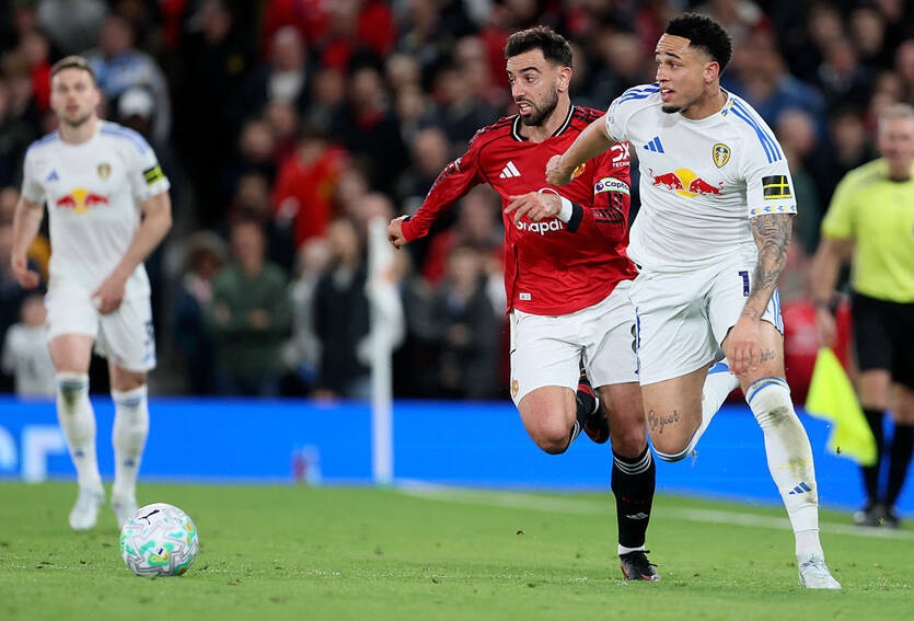 Лідс відкрив рахунок на самому початку зустрічі, коли Ноа Окафор, після навісу в штрафний майданчик, в дотик відправив м’яч у ворота МЮ. Збільшили свою перевагу “павичі” в середині першого тайму, знову завдяки швейцарському нападнику, який оформив дубль. Після кількох спроб доставити м’яч у штрафний майданчик, Окафор вирішив пробити здалеку і влучив у правий нижній кут.